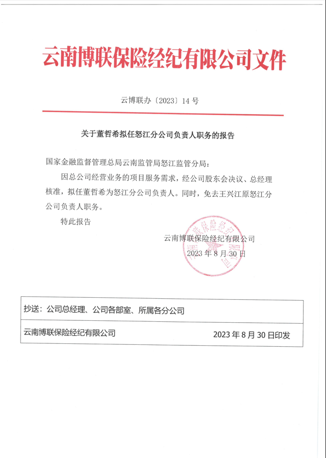 云南博聯(lián)保險經(jīng)紀有限公司關于文