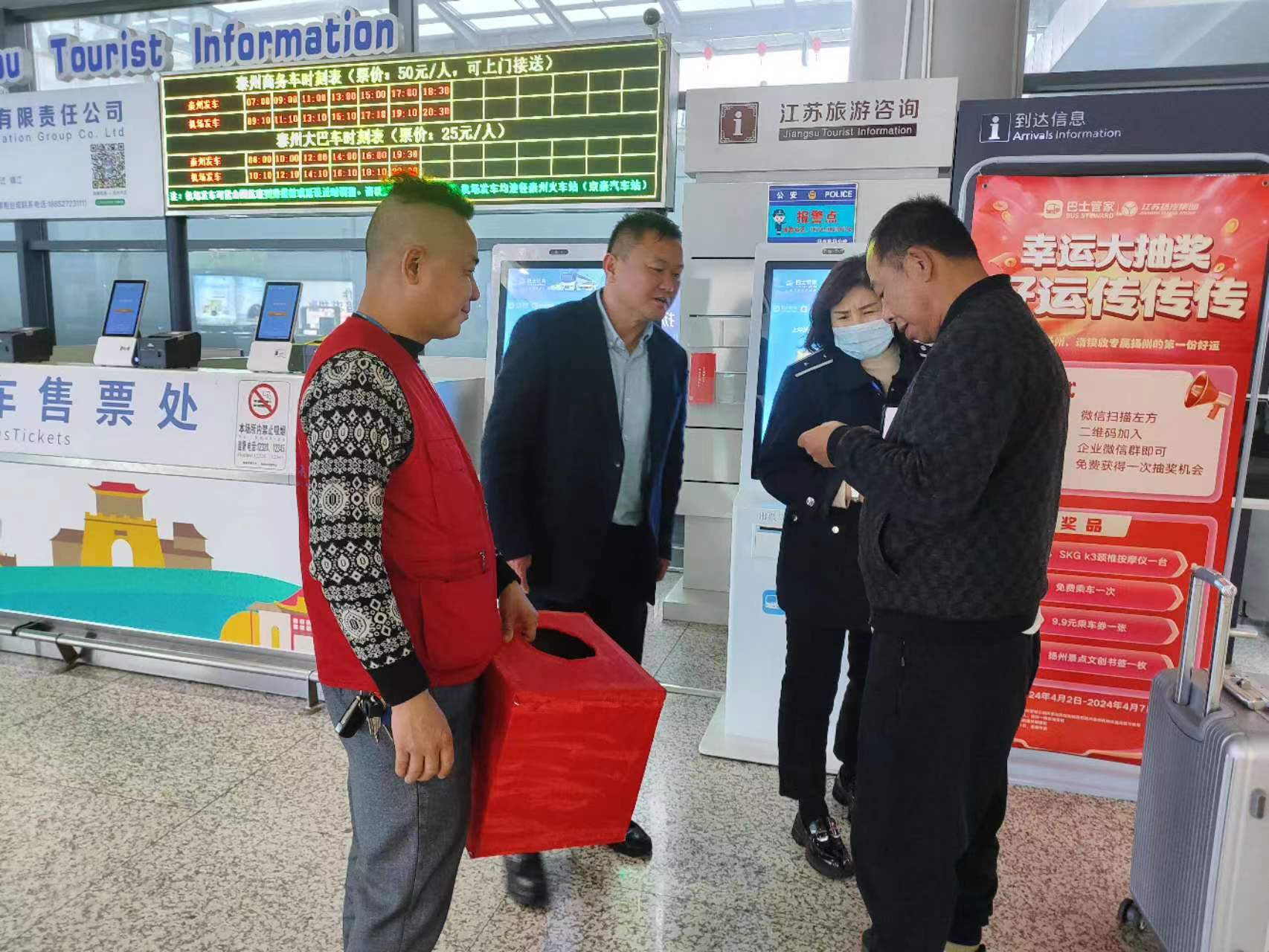 在抽獎活動現(xiàn)場,相關(guān)負(fù)責(zé)人與旅客進(jìn)行了交流互動,介紹了活動的主題和參與方式,講解了機(jī)場專線的運(yùn)營模式和專線停靠站點(diǎn)和走向,熱情地向旅客介紹了揚(yáng)州的旅游景點(diǎn),同時,認(rèn)真聽取了現(xiàn)場廣大旅客對機(jī)場專線建議。